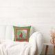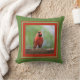Photo of a northern cardinal sitting on a cedar fence, framed in matching red and greens. Back of pillow is solid green. Perfect gift for your favourite bird watcher/nature lover.