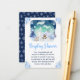 This cute and whimsical watercolor display shower enclosure card features a watercolor winter wonderland scene with adorable arctic animals, such as a polar bear, penguin, cat, owl, seal and a moose. In the background are the northern lights, snow capped mountains and trees. The text combines handwritten script and sans serif fonts for a stylish and modern look. Falling snowflakes and beautiful blue floral arrangements give a winter feel. This is perfect for winter and Christmas baby showers.