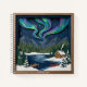 A cute little 3D layered paper diorama of the Northern Lights (Aurora Borealis) in the Canadian North, on a cute square shaped notebook! You can see the clear dark blue night sky with stars, mountains, forests, a lake with a cabin, canoe and dock. This is a winter landscape with snow on the trees and ice forming on the water. The lights glow through the cabin's window, and smoke rises from the chimney. Just a cute and kitschy artwork celebrating one of the most incredible vistas Canada has to offer. The words 'Northern Lights' are written at the bottom, but you can easily change the words to something more personal to you. Like your name, or you can add the year (if you traveled to Canada yourself) or a short meaningful quote or travel phrase. You can also change the paper style for the interior of the book. You can have recipe pages, blank sketchbook pages, or any of the varied options.