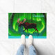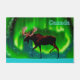 An ever so slightly stylised image of a moose silhouetted against the Northern Lights. Text reading “Canada” appears in glowing blue.