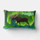 An ever so slightly stylised image of a moose (Alces alces) silhouetted against the Northern Lights. Text reading "Alaska" appears in glowing blue and white. Customise by adding your own additional text on the reverse side.