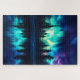 The vibrant hues of green, blue, and purple dance across the sky, illuminating the silhouetted forest below and reflecting in the serene waters. This puzzle promises an engaging and rewarding Relaxation Activity, making it one of the ideal gifts for jigsaw puzzle lovers.