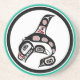 Decorate your bar with this sandstone coaster with a beautiful Haida Killer Whale on a green background.