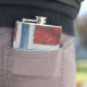The flask itself is fine. It’s a cheap flask, obviously bought in bulk, however am prepared to overlook that. Given that it is a personalized item, I would have liked to have seen gift boxing instead of the generic packaging. Terrible printing, and/or quality. It’s a cheap, tacky vinyl. It is not cut straight and is also applied in a way that it is overhanging the bottom, causing the glue to catch on items and it will eventually roll and tear, damaging the wrap.