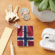 Keychain with the flag of Norway in wavy fabric style design. This design features the Norwegian flag colours and design with a beautiful waving material textured effect. This flag design is a great way to show you are proud to be from Norway.