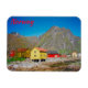 Coastal scene with mountains and colorful wooden houses in Svolvaer, Lofoten Islands, Norway