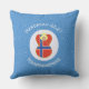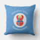 Blonde haired angel wears the flag of Norway on an outdoor pillow for holiday and Hanukkah decor. Design created for families with multiple religions. The Norwegian flag Hanukkah angel is inside the circle of white squiggly squares. The background is blue squiggly squares. Add your own text or customise with the year and personalise with a name.