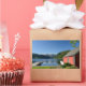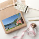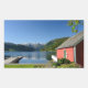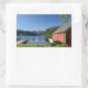 Rectangular souvenir photo sticker of a view over the fjord Hardangerfjord with some mountains and a red boathouse from Ulvik, Hordaland, Norway.