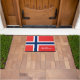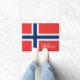 Swedish flag door mat with custom welcome text for Sweden home or store. Scandinavian home decor. Make your own custom door mat for country chic home, restaurant, hotel, business, office, company, shop etc. Add your own welcome message, family name, monogram, store name or funny quote. Cute gift idea for new home housewarming party. Custom colour background. Vintage rustic typography. Personalizable doormat sign template. Create your own entry mat / rug for front door / entryway or hall. Customisable home decor / decorations for your house or store. Upload your own image.