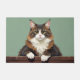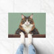 The soft forest green background enhances its woodland origins, creating a calm and earthy look perfect for welcoming entryways. Designed with extra space at the top and bottom, it allows easy personalisation with names, welcome messages, or custom text—making it ideal for unique cat-themed doormats and thoughtful gifts.