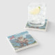 The coasters are gorgeous, a quality feel and heavy weight. They look like a precious archeological find. A rustic stone juxtaposed with a modern floral black and white print. I like the way the print goes slightly imperfect on the cut stone edges giving them a kind-of natural beauty.