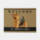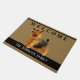 Cute doormat featuring an illustration of a Norwich Terrier. Customisable background colour and texts. Perfect gift for the dog lover or Norwich Terrier owner.