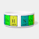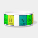 Nosh spelled out as N Os H (Nitrogen Osmium Hydrogen) on a pet bowl for the scientist in your best friend.