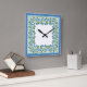 Nostalgic Blue Morning Glory Square Wall Clock