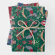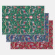 Beautiful nostalgic gift wrap set with hand-painted rocking horses, teddy bears, and botanical elements like mistletoe and fir branches. This paper brings a festive charm to any gift. The set includes three sheets in green, blue, and red.