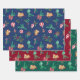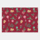 Hand-Painted Nostalgic Christmas Design with Teddy Bears, Baubles, Holly, Fir Branches, Bows, and Candy Canes. Traditional and Festive Colours. Set of three Sheets in Blue, Green, Red.