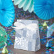 A chic Tent Favour Box and matching Toothbrush Holder, with a nostalgic Faux Patchwork of floral, check and polka dot patterns, in Indigo Blue and White. Part of the Posh and Painterly 'Indigo' collection, this pattern can easily be adjusted to fit any Favour Box.