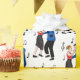Birthday or Anniversary fifties themed gift wrap with graphics of vinyl albums, musical notes, a couple dancing, milkshakes, drive in sign, tvs hotdogs and other fun retro images.