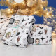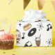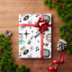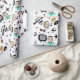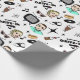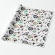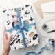 Birthday or Anniversary fifties themed gift wrap with graphics of vinyl albums, musical notes, a couple dancing, milkshakes, drive in sign, tvs hotdogs and other fun retro images.