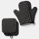 Black Silicone Heat Protection, Oven Mitt & Pot Holder Set