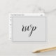 This nostalgic and old fashioned RSVP postcard design features the message "rsvp" on the front. It also features a personalised RSVP form on the back, along with a personalised address that the completed RSVP cards would be mailed to. RSVP cards like this might be used to find out who will be attending a Christmas party, a wedding reception, a graduation party, or some other event.