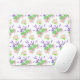 A pretty floral mousepad, with a pattern of pink Roses, creamy white Mock Orange Blossom and purple Lavender, from a handpainted watercolour design by Judy Adamson.