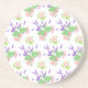 A pretty sandstone coaster with a pattern of pink Roses, creamy white Mock Orange Blossom and purple Lavender, from a handpainted watercolour design by Judy Adamson.