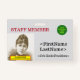 This nostalgic and classic staff badge design features personalised information such as a portrait photo, a business/organisation logo, a staff member name, and a role name. A badge like this could be used to identify somebody as a staff member of a business, company, or organisation. [~Z0000450]