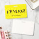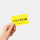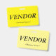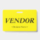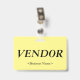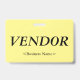This traditional badge design features the message "VENDOR", and a customisable company name or other custom message. A badge like this could perhaps be used to indicate that a person is a known and authorised guest or visitor at a business or workplace. [~Z0000307]