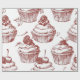 A nostalgic red Christmas gift wrap in vintage toile style line art, featuring frosted cupcakes topped with holly leaves, holly berries, and blackberries. The red on white palette feels cosy and traditional, perfect for cookie swaps, hostess gifts, and sweet surprises under the tree. Pair with twine, velvet ribbon, or kraft tags for a classic finish.