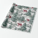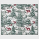 A snowy woodland scene in red and green toile features curious foxes, watchful owls, and fir trees dusted in snow. This vintage inspired Christmas wrapping paper brings a cosy forest feel to your holiday gifts with a touch of rustic charm.