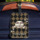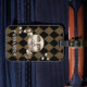 A nostalgic vintage steampunk fantasy man in the moon design with a harlequin checked background. In antique sepia tones. Personalise with your name or give as a gift.