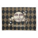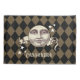A nostalgic vintage steampunk fantasy man in the moon design with a harlequin checked background. In antique sepia tones. Personalise with your name or give as a gift.
