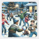 Nostalgic Winter Scene | Children's Snowball Fight Square Sticker