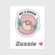 A sticker illustration of a pufferfish with the text "not a hugger" above it. The pufferfish is in a seashell and is surrounded by seaweed. The background is a light blue gradient.