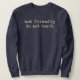 This is the sort of message you'd normally put on a dog so people don't try and pet it and get bitten, so having it on a sweater for a person to wear is funny but also gets across the message that you probably just want to be left alone.