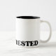 The ultimate "first cup" energy. Bold black text on a clean white mug with a black handle/interior.