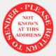 A useful not known / return to sender sticker. Designed to be eye catching (you want the postman to notice this) Clear and easy to read, using a stylish clear font which makes the message clear.