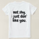 "Express Your Bold Individuality with 'Not Shy, I Just Don't Like You' – Wear your confidence proudly and let the world know that you're unapologetically yourself."