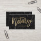 A modern, stylish notary business card with modern hand lettering style brush typography in faux gold foil on a trendy and elegant black marble background.