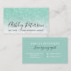 An elegant modern, stylish notary business card with elegant modern simple hand lettering style typography in white on a faux chic mint green glitter and white marble trendy and elegant background. all text is customisable, add your social media.