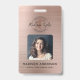 Notary Loan Agent Brushed Rose Gold Quill Photo ID Badge