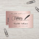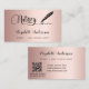 An elegant and glamourous business card on a blush rose gold faux metallic looking background and a black signature signing pen. Elegant hand lettered style script. Personalise and add Your name, title, contact info and your own QR code to your website address.