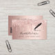 An elegant and glamourous business card on a rose gold background decorated with drips, paint dripping look on front and a black signature signing pen. Elegant hand lettered style script. Personalise and add Your name, title, contact info and your own QR code to your website address.