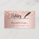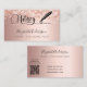An elegant and glamourous business card on a rose gold background decorated with confetti on front and a black signature signing pen. Elegant hand lettered style script. Personalise and add Your name, title, contact info and your own QR code to your website address.