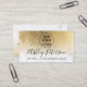 An elegant modern, stylish notary business card with elegant modern simple hand lettering style typography in white on a faux yellow gold foil metallic and white marble trendy and elegant background. all text is customizable, add your social media. Add or remove your logo.