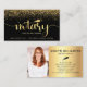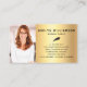 Present your best self to your clients. Faux gold foil, fancy handwritten script typography with feather pen and gold glitter overlay a dramatic, black background. On the back, your custom photo on the left side and modern sans serif typography overlaying a faux gold ombre foil background on the right. Personalise with your full name and business info on the front. Fill in the back side with the photo of your choice and your phone numbers, address, email, website, and other information. Makes a chic, professional, and stylish statement wherever you go.
