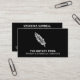 A professional business card for a Notary Public, Apostille Service or Loan Signing Agent. A modern, simple and minimalist design featuring a feather pen graphic on a black background. Edit the text templates for your own custom business card.