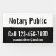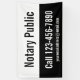 This black and white banner has black display text at the top (Shown: Notary Public). You can edit the text to enter your company name or a custom message. The text is on a white stripe. White display text for your phone number and email address is on a black stripe at the bottom.