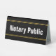 This black tabletop sign has white display text that you can edit to show a custom message such as your professional title. (Shown: Notary Public) The faux gold lines that are above and below the text are not made of foil.